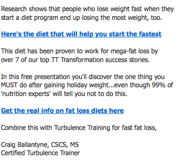 For that, you need a good headline. The subject I used was, “#1 Diet for Rapid Fat Loss”. This gave me an above-average open rate.